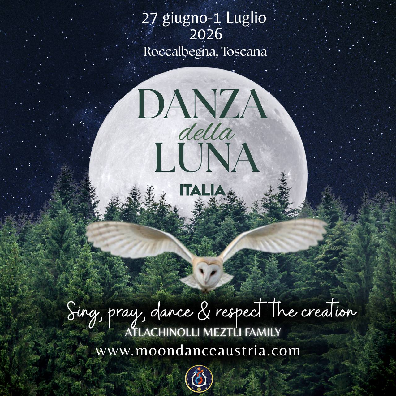 The Moondance is an ancient prayer where women from all walks of life and all ages come together to pray, purify and reconnect with the forces of nature and our inner feminine power, wisdom and love. A ceremony of devotion in honor of the sacred elements and nature. Together we sing, dance and pray for peace between nations and humanity. We live in a time where the main priority and need is to be in conscious circles of prayer and love, in family of all colors and countries.